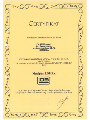 Zajmujemy się naprawą uszkodzonych stacyjek oraz zamków. Nasza oferta obejmuje także pro- fesjonalny montaż zamków i okuć drzwiowych. Jesteśmy autoryzowanym przedstawicielem wio- dących producentówna rynku: KABA GEGE, GERDA, LOB, MCM, ISEO, FAB, FANA, KASTA, WILKA.
